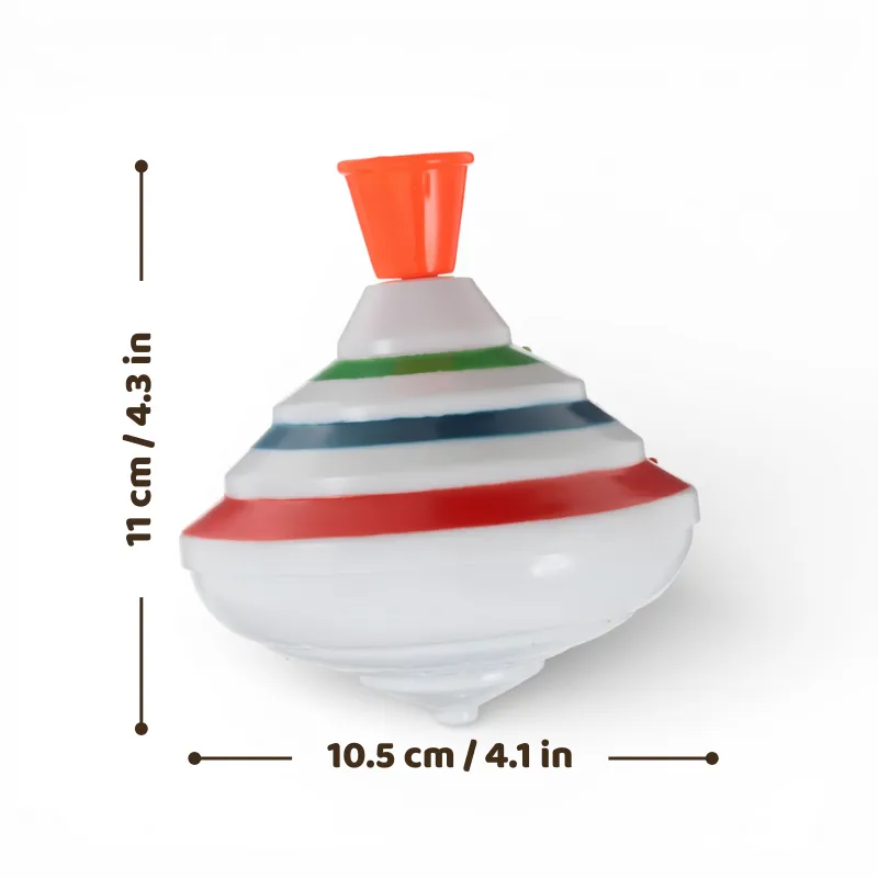 O pião faz sucesso nos encontros de brincadeiras. Todo mundo tem sua vez, até os adultos participam. Muito fácil de usar e suficientemente brilhante para chamar a atenção.
