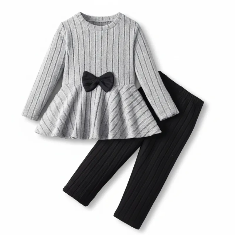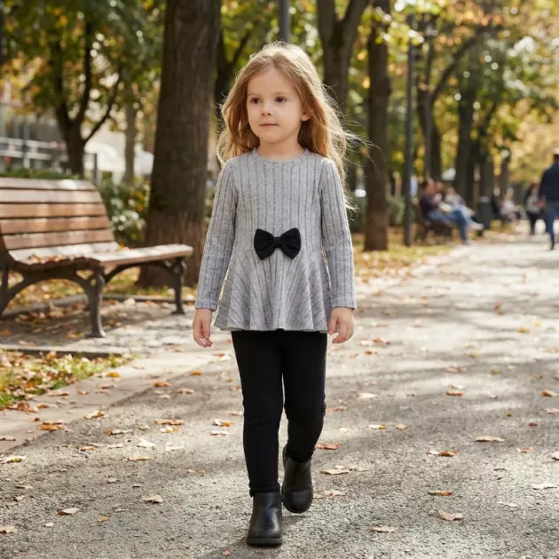 Conjunto Fofo com Manga Longa, Laço e Leggings para Meninas