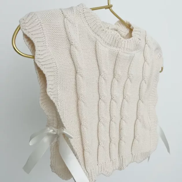 Este pequeno colete torna as roupas da manhã muito simples. A minha filha só o veste por cima de uma camisola de manga comprida e fica logo quentinha e pronta para sair.