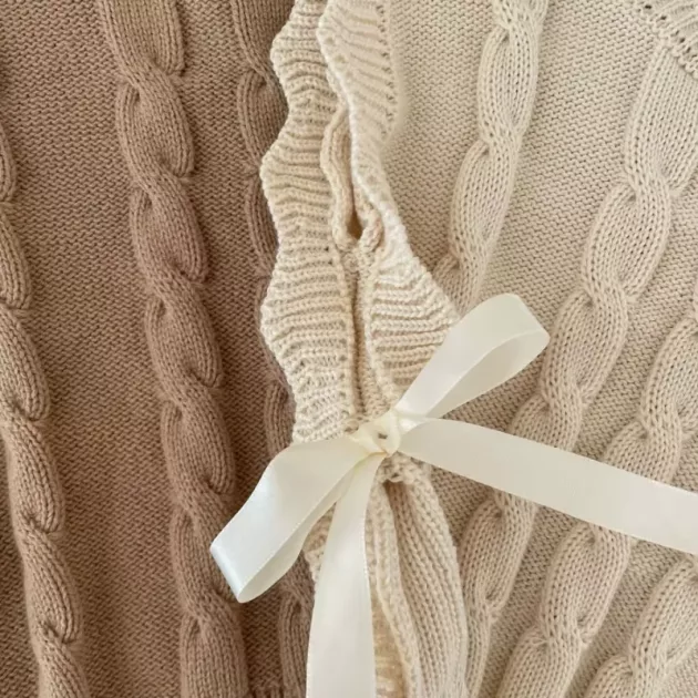 O colete continua macio mesmo depois de muitas lavagens. A minha filha adora as pequenas tranças e diz que a fazem parecer uma menina grande a ir trabalhar.
