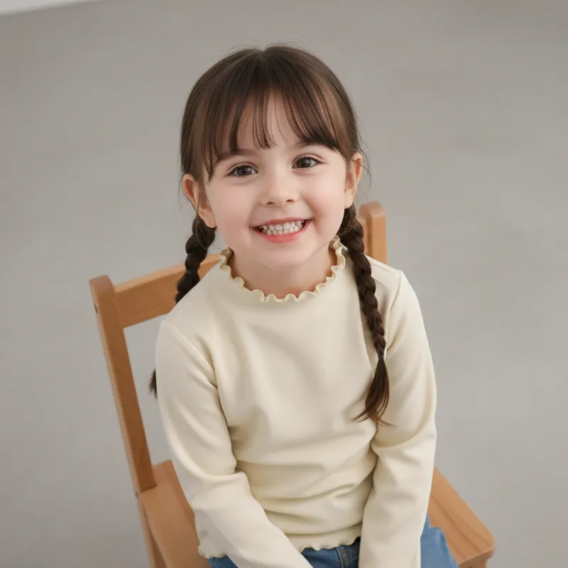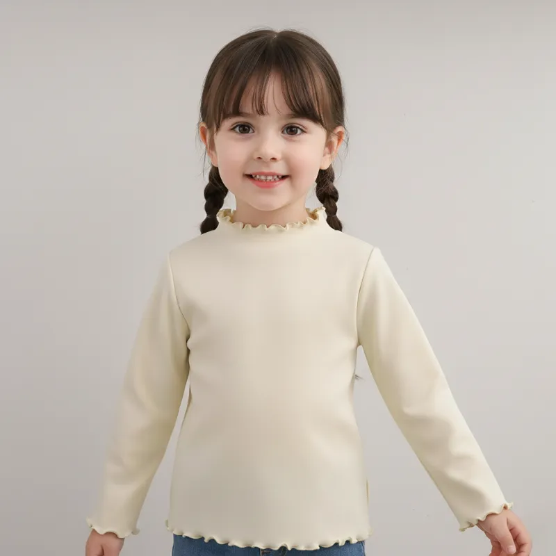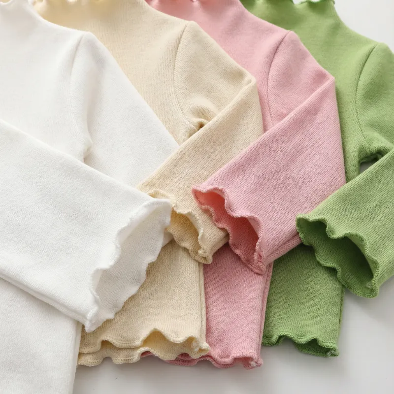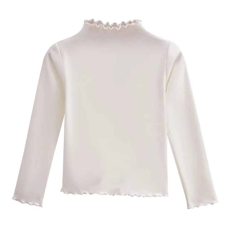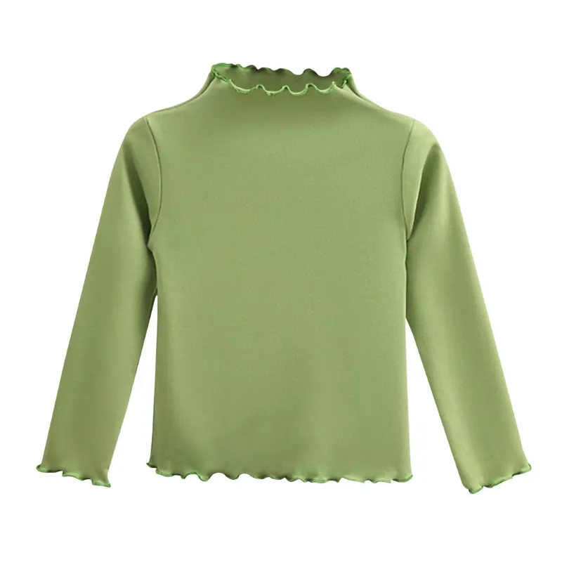 Linda Camisa de Manga Longa com Acabamento de Alface para Crianças