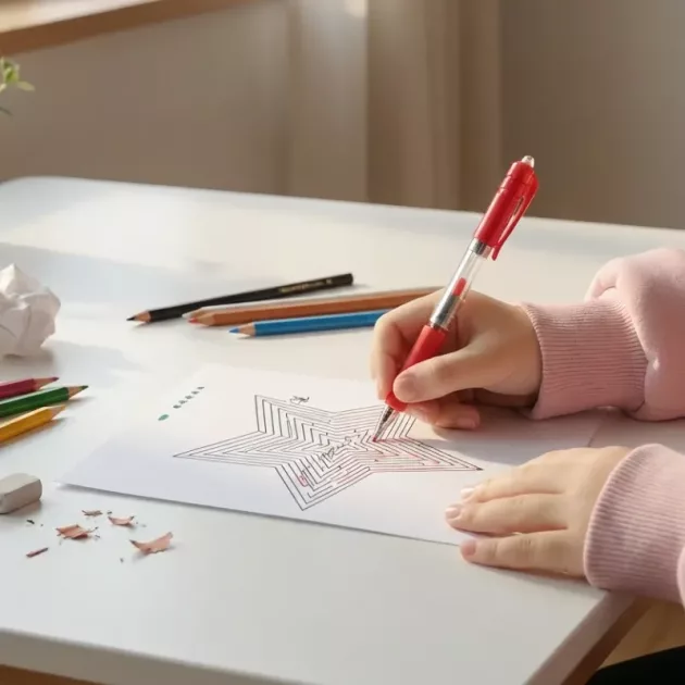 Minha mãe me dá esses labirintos depois da escola. São ótimos para relaxar, e agora já consigo fazer quebra-cabeças mais difíceis sem ajuda.