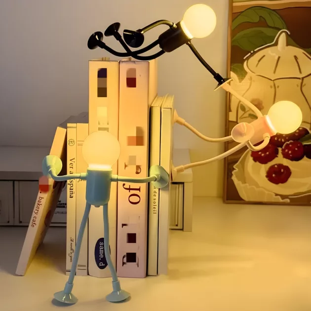 Uso minha luminária fofa em todos os lugares—às vezes é um bichinho, às vezes só um boneco de pauzinho. Não tem mais briga na hora da leitura!