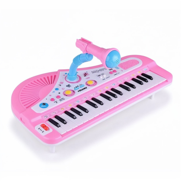 Minha irmãzinha adora inventar músicas engraçadas com este piano. É a melhor coisa ver ela dar risada e cantar no microfone.