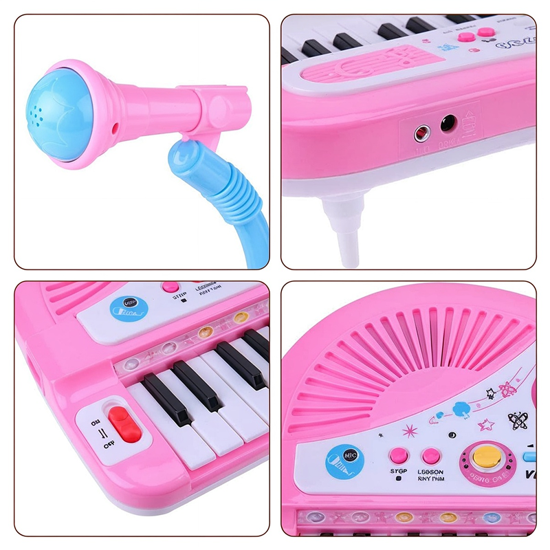 Minha irmãzinha adora inventar músicas engraçadas com este piano. É a melhor coisa ver ela dar risada e cantar no microfone.