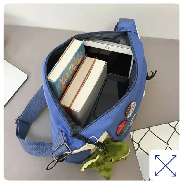 Comprei essa bolsa fofa para minha irmãzinha. Ela recebe muitos elogios na escola. O chaveiro de pelúcia é a parte favorita dela.