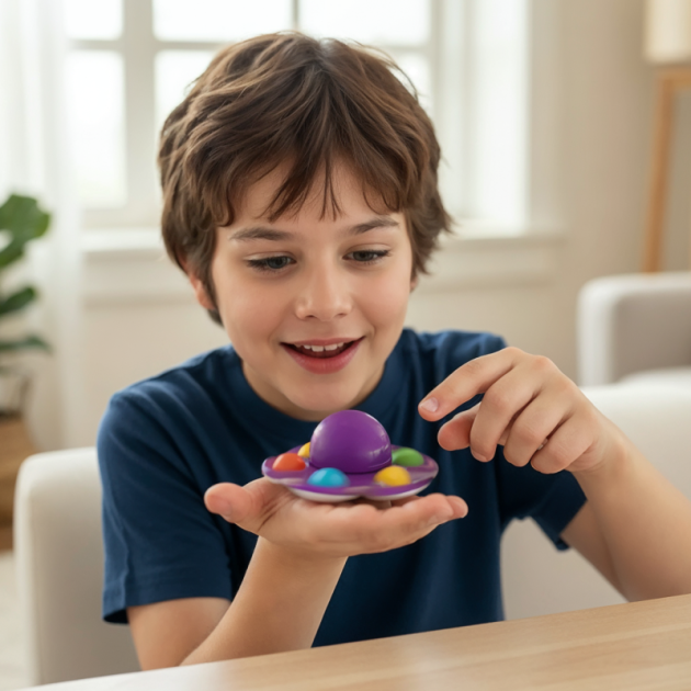 Dois em um – Esta é a combinação ideal de um spinner e um brinquedo de estourar bolhas. As crianças não se cansarão das versáteis opções de brincadeira.