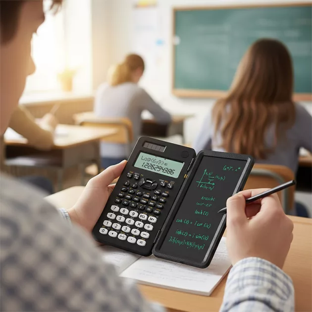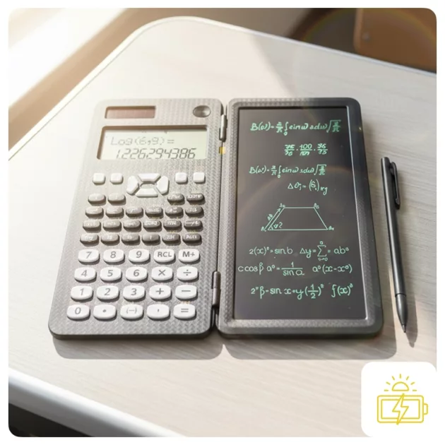 Energia Solar Confiável - Nunca se preocupe com falhas repentinas de energia durante as aulas ou provas. Energia solar e bateria reserva mantêm a calculadora funcionando sem problemas.