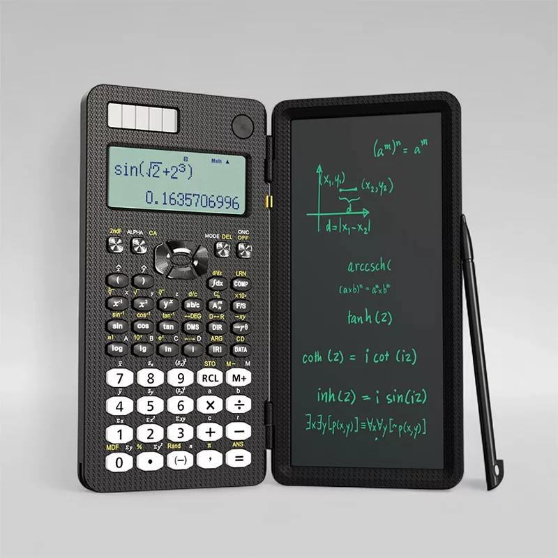 filho adora ter o bloco de notas anexado bem ao lado da calculadora. Ele nunca perde os passos e apaga o trabalho super rápido.