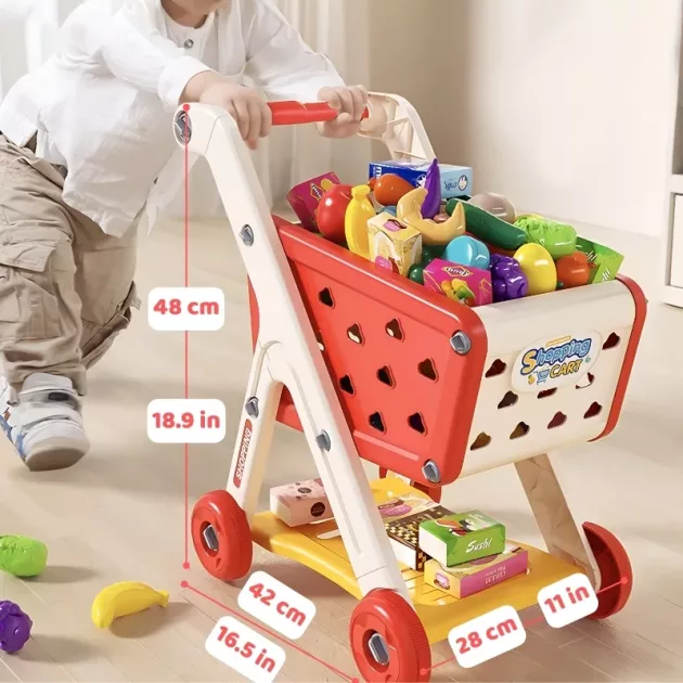 Interação social - Este brinquedo de carrinho de supermercado é perfeito para jogos de faz de conta com amigos ou família. As crianças podem atuar como compradores e vendedores, melhorando suas habilidades de comunicação.