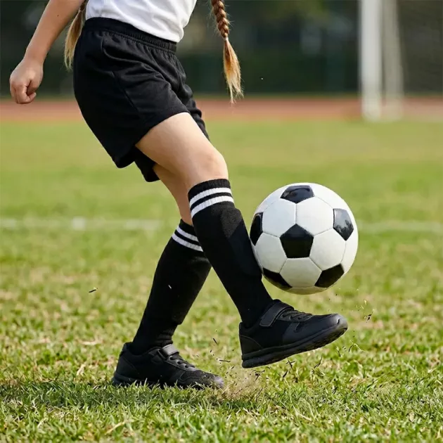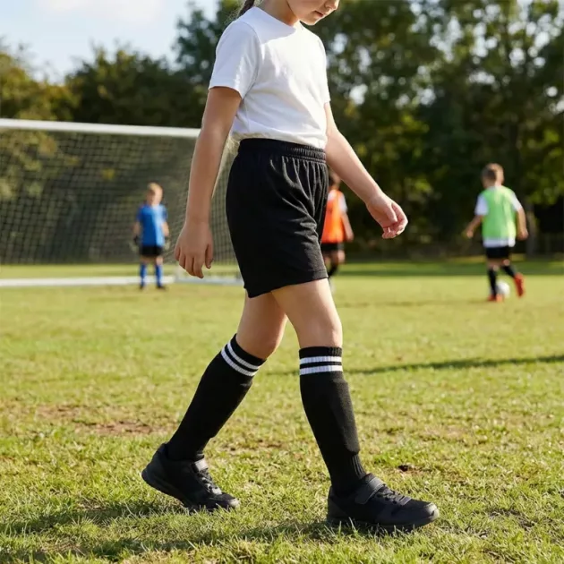 Proteção Confiável - Materiais resistentes protegem as pernas durante a brincadeira ativa no campo. Cada partida traz tranquilidade para os pais que assistem de perto.