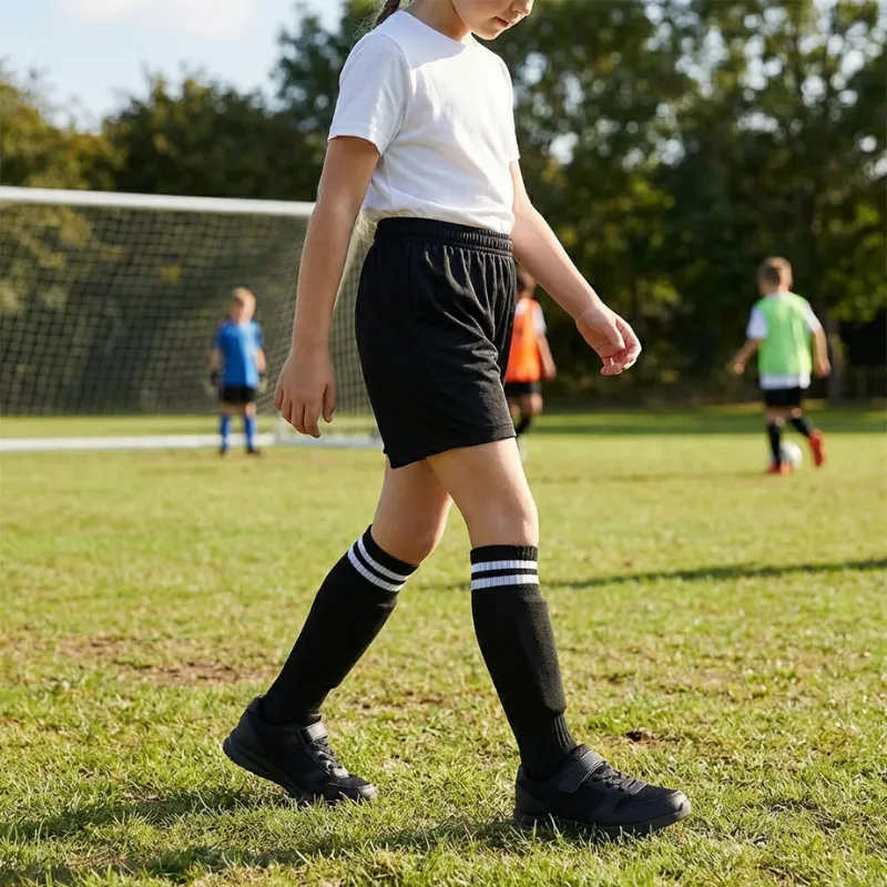 Dê ao seu filho o melhor suporte em cada jogo de futebol. Protetores duráveis e flexíveis protegem as pernas dos chutes, enquanto as meias respiráveis mantêm os pés secos. As tiras mantêm tudo no lugar para correr e se divertir sem preocupações. Deixe as crianças brincarem com coragem, sabendo que estão protegidas.