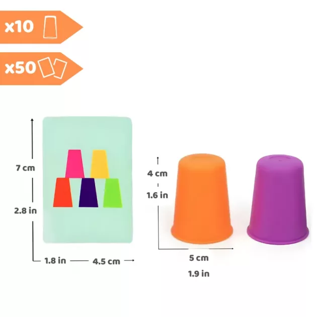Pegamos este jogo de empilhar copos para nossos filhos e ele se tornou nosso favorito para a noite de jogos em família. Os copos coloridos fazem todos rirem e pensarem rápido.
