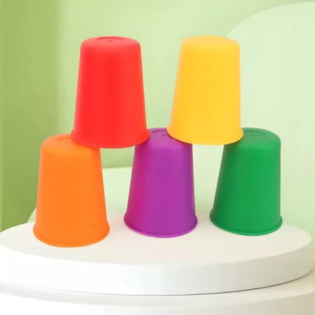 Minha filha adora brincar com esses copos coloridos. Ela aprendeu a resolver todos os padrões e não se cansa disso.