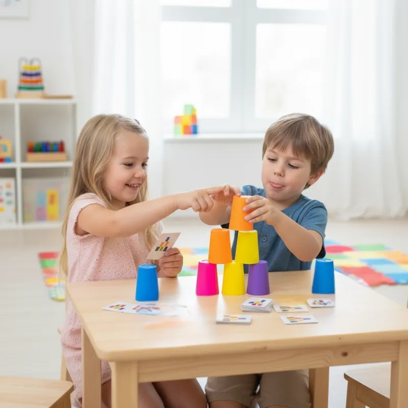Crescimento Cognitivo - As crianças resolvem desafios organizando cores e padrões. Cada rodada fortalece a atenção, a memória e o raciocínio lógico.