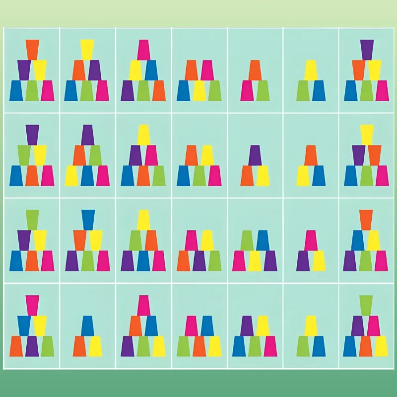Minha filha adora brincar com esses copos coloridos. Ela aprendeu a resolver todos os padrões e não se cansa disso.