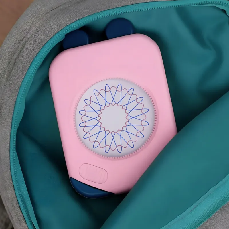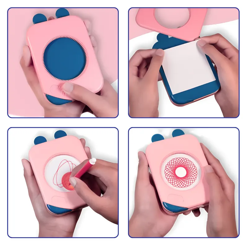 Esta caixa de desenho me permite fazer espirais quase em qualquer lugar. Até minha irmãzinha gosta de assistir. A limpeza é super rápida, basta fechar a tampa.