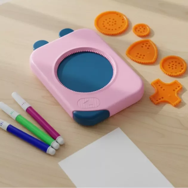 Fazer desenhos divertidos com essas engrenagens de plástico é relaxante. Levo para a casa do meu amigo, já que é tão pequeno. Vale muito a pena para quem ama arte.