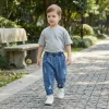 Conforto o Dia Todo - Cintura elástica macia garante vestir rápido todas as manhãs. O jeans respirável mantém as perninhas frescas durante as atividades.
