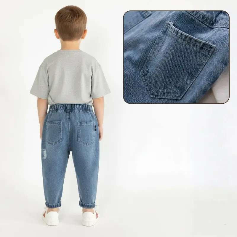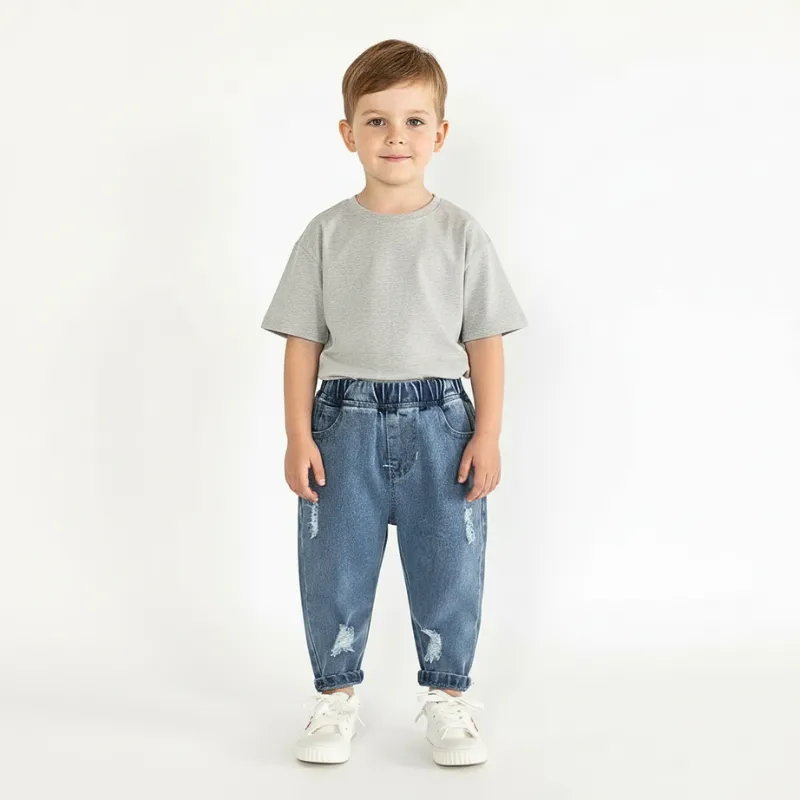 O jeans é super confortável e me deixa correr por aí sem apertar. Os rasgos estilosos fazem dele meu favorito para brincar lá fora!