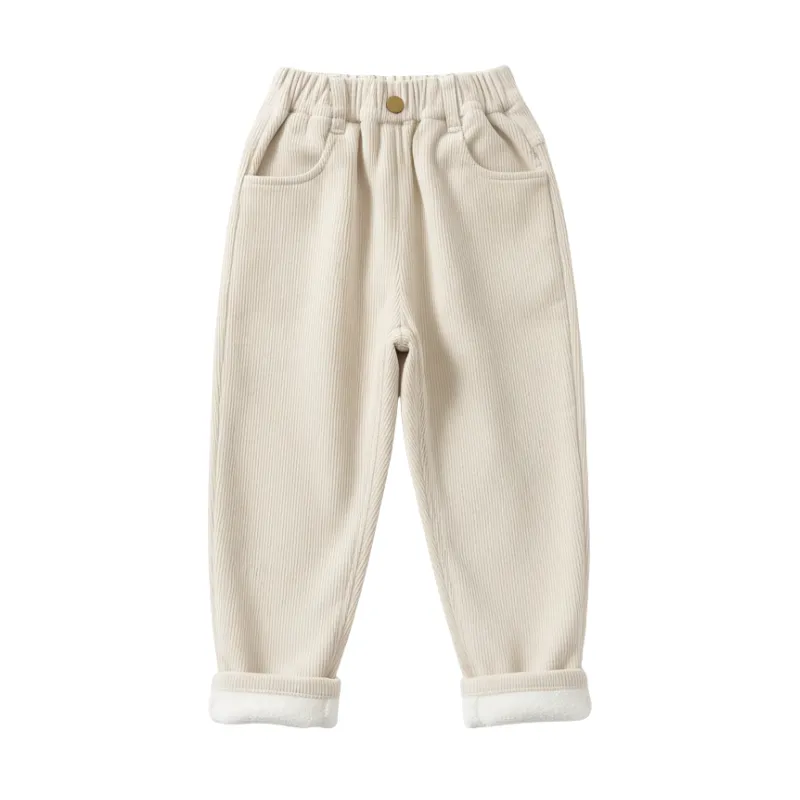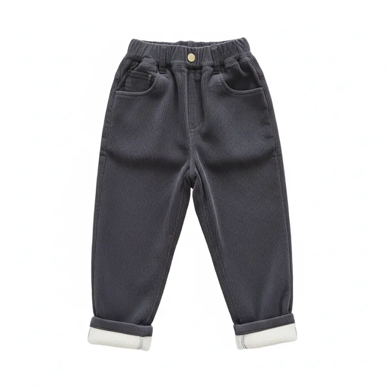 Adoro como essas calças de veludo mantêm meu filho quentinho nas manhãs frias. Ele nunca reclama de frio no recreio e sempre chega confortável em casa.