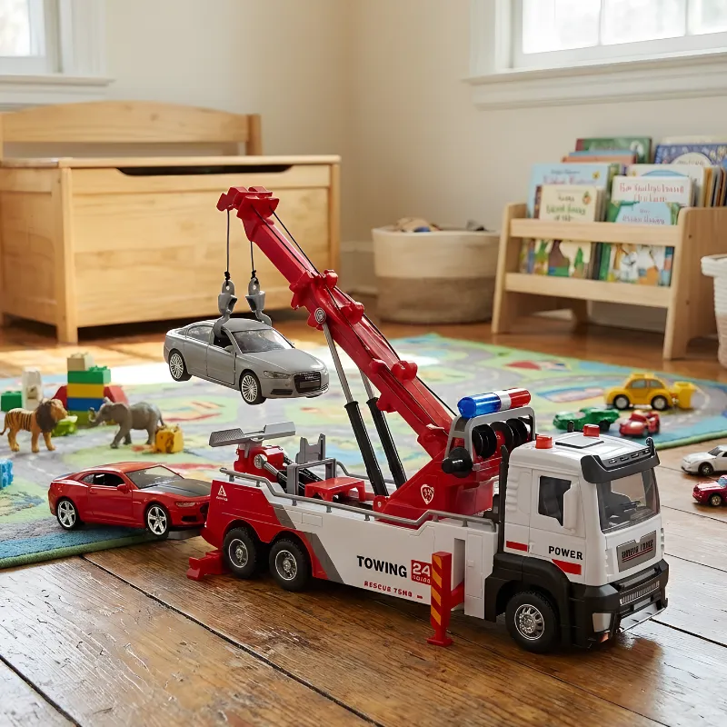 Este caminhão guincho é muito divertido! Meus filhos inventam histórias de resgate o tempo todo. O movimento de retrocesso é suave e nunca trava.