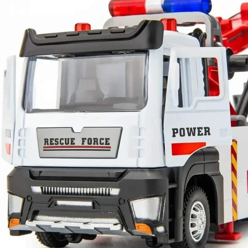 Meu irmão e eu adoramos brincar de resgate com este caminhão guincho, especialmente com os ganchos legais e luzes brilhantes. As portas se abrem e é muito divertido de usar!