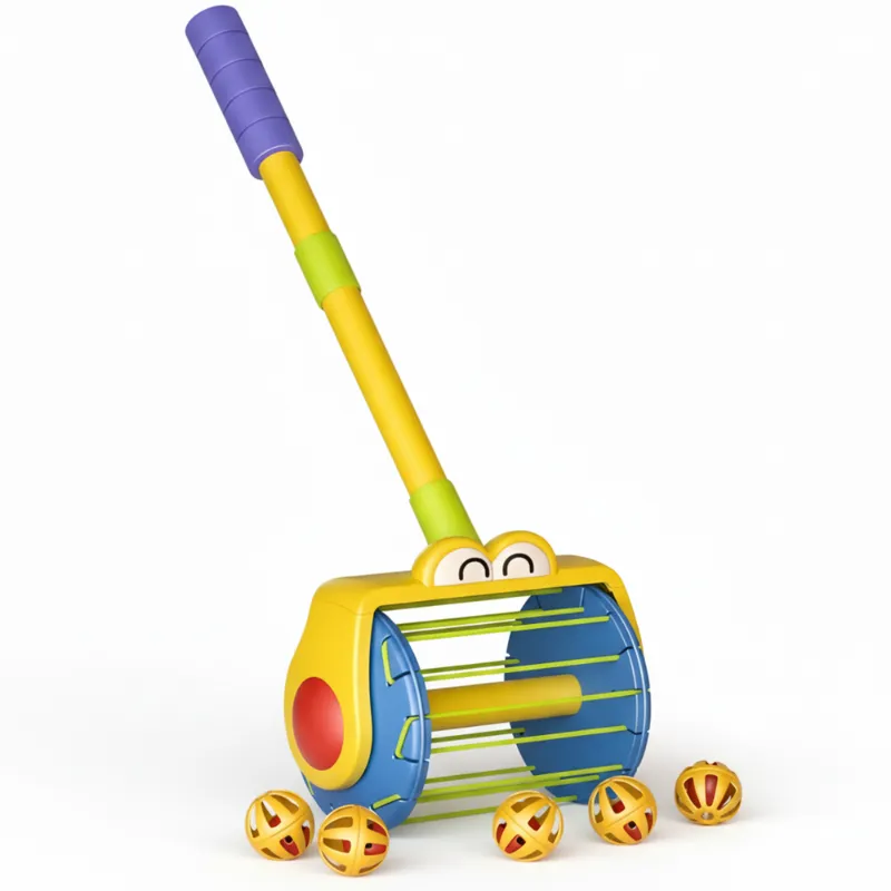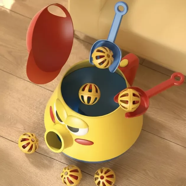 Esse brinquedo é muito divertido. Meus primos e eu sempre inventamos jeitos novos de lançar e pegar as bolas. Me ajuda a mexer mais todos os dias.