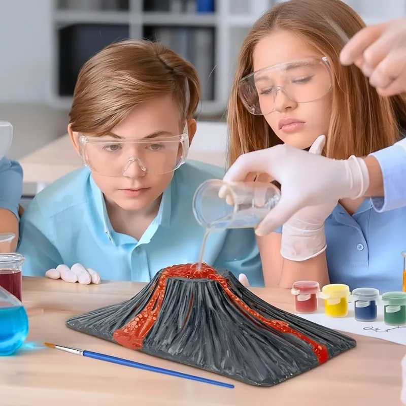 É muito mais divertido do que apenas assistir a um vídeo! Eu pude pintar, misturar e ver uma erupção de verdade na minha mesa.