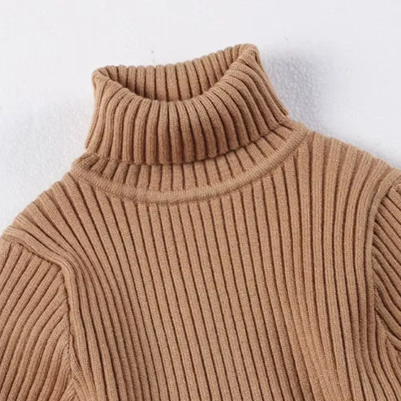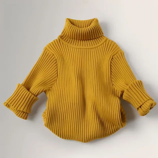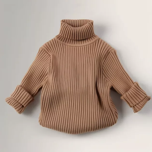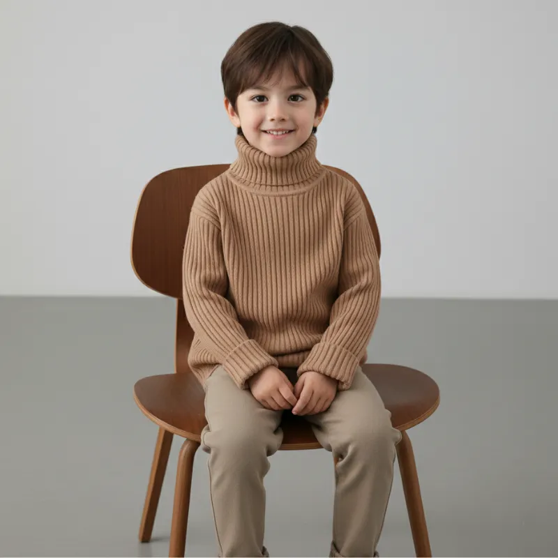 Suéter Grosso Oversized de Tricô com Gola Alta para Crianças