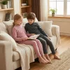 O tecido macio envolve a pele, mantendo os pequenos confortáveis dentro de casa. O algodão leve e suave permite que a pele respire, ajudando a evitar o superaquecimento durante o sono. Cada peça traz calma na hora de dormir, e vestir-se é simples todas as manhãs.