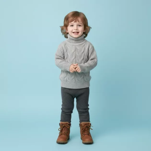 Suéter de Malha Grossa com Gola Alta para Crianças – Pulôver Quente de Inverno