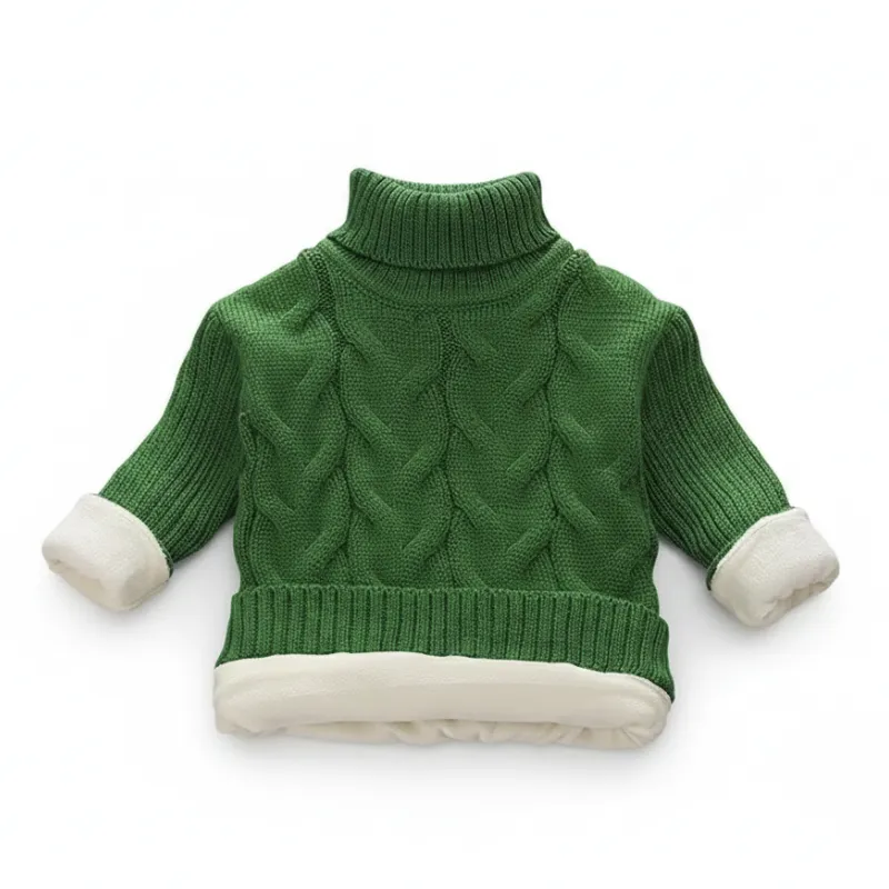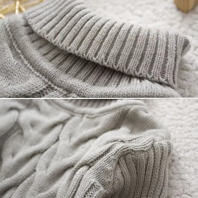Suéter de Malha Grossa com Gola Alta para Crianças – Pulôver Quente de Inverno