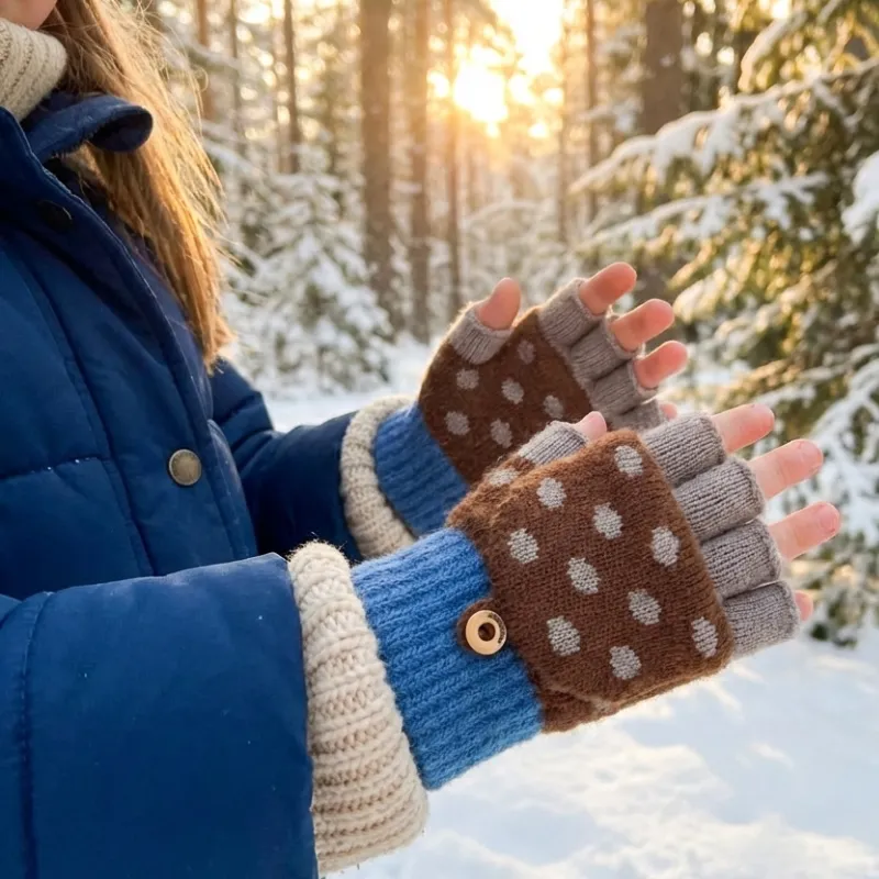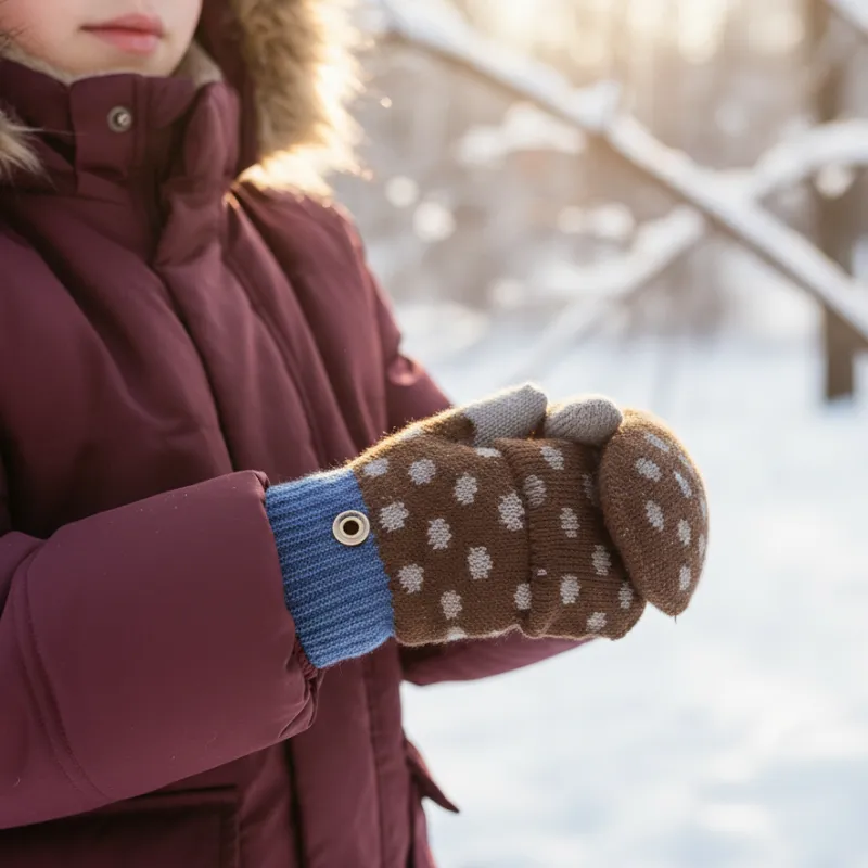 Minha filha adora essas luvas porque pode deixar os dedos livres quando come lanches ao ar livre. Super fofas e muito macias por dentro. Mantém ela aquecida nos nossos passeios.