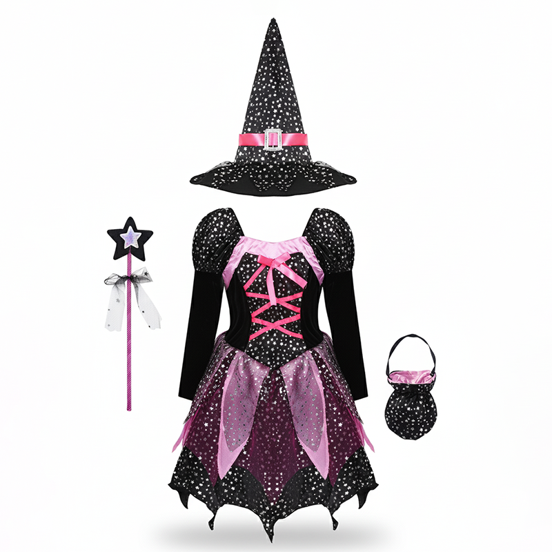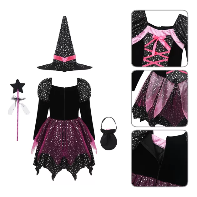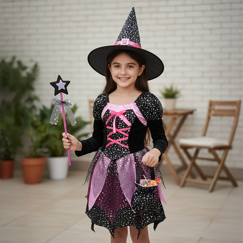 Muito satisfeita com essa fantasia! O chapéu e a varinha combinaram perfeitamente. Minha filha correu lançando feitiços nos amigos e rindo o tempo todo.