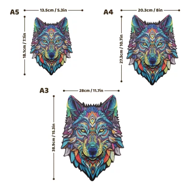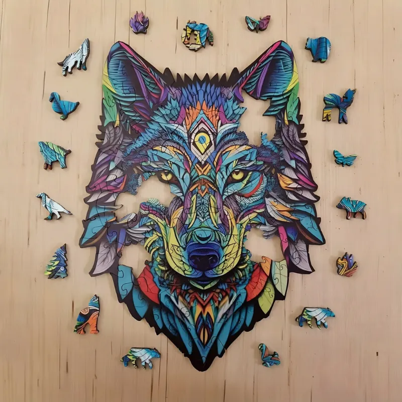 O quebra-cabeça de lobo de madeira é muito divertido! Minha irmãzinha aprendeu novas formas e adoramos ver o lobo pronto ganhar vida.