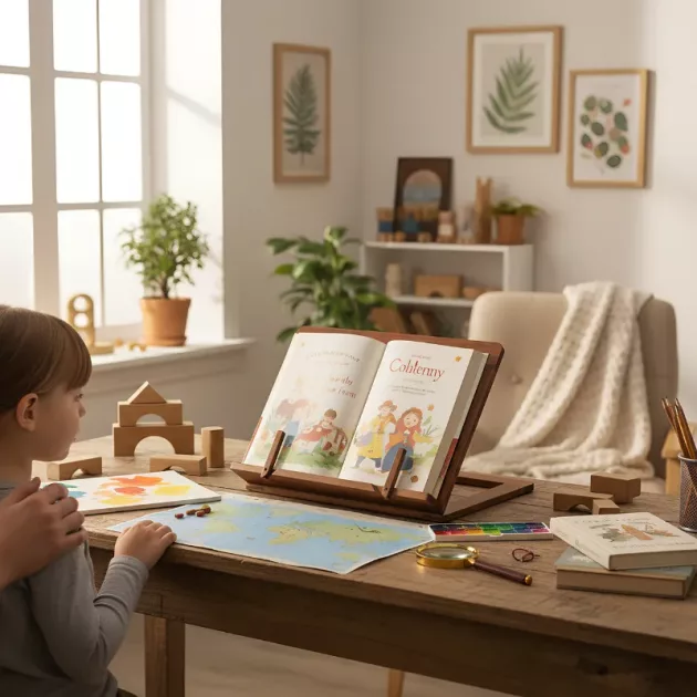 Apoio de Postura - Reduz o esforço no pescoço e nos ombros durante os estudos. As crianças podem aproveitar histórias ou tarefas com mais conforto em cada sessão.