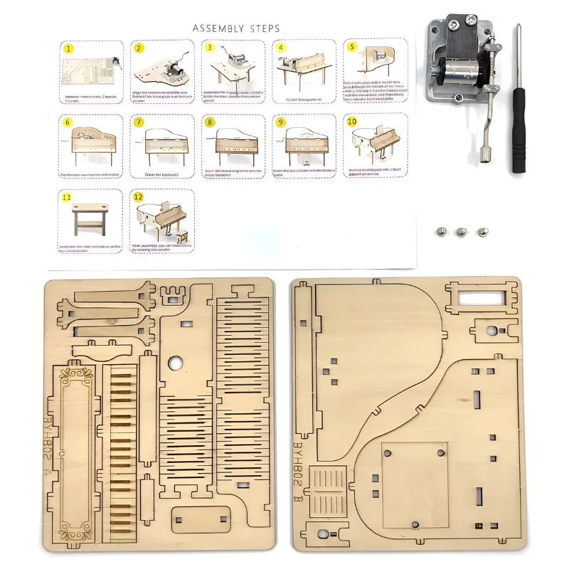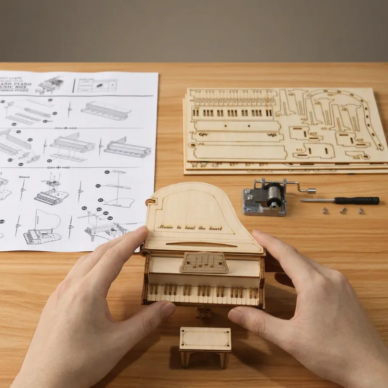 Estou super orgulhosa do meu piano de madeira. Ele realmente toca uma melodia! Aprendi a ter paciência e seguir cada passo, e me senti incrível quando terminei.