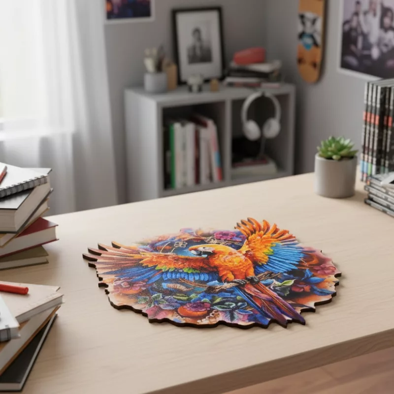 Quebra-Cabeça de Madeira Papagaio Brinquedo Educativo Montessori para Crianças