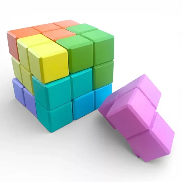 Gosto de ver como minha filha fica criativa. Ela até inventou um joguinho com o cubo para os amigos dela.